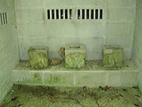 ▲頂上部の祠(イビ) ▲中に置かれた石と文字