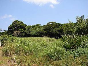 ▲中央部の杜が我部祖河のウタキ ▲ここは便宜上の入口か。明確な神道あり。