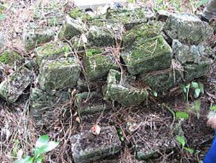 ▲運天のテラ原にある土手(印部土手?) ▲環状に廻らされた石積み