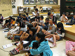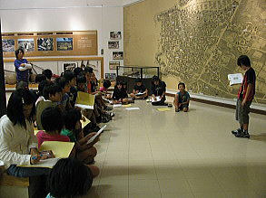 ▲雨の中、比嘉さんの説明を聞く ▲恩納村博物館の研修室で「まとめ」でした!