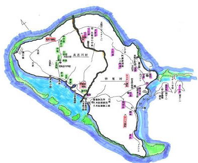 沖縄の馬や競馬や馬場の件、おきなわ県民カレッジの講師の件、沖縄県地域史の研修会(久米島)、そして「地域文化―恩納村のムラ・シマ―」での大学の講義。頭はフル回転。頭を休めるために、まずは久米島の地図でムラ・シマの位置の確認。それが頭にないと、なかなか語れない!