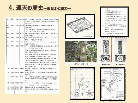 午前中、「運天の歴史―運天港が果たした歴史的は役割」がテーマ。先週台風の接近で休講でしたので今週に行う。「運天の歴史」は若い頃(20数年前)にまとめた論文の一つである。以下のことを紹介しながら、運天(港)が果たした役割について考える。