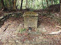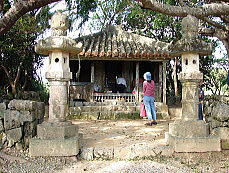 ▲参拝者の姿のある久志観音堂 ▲ヌルガー(後方に香炉)▲前田森の中の墓?