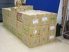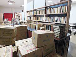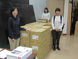 その後、寄贈本124箱が講堂へと運び入れされた。