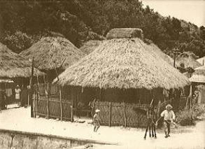 ▲チニブのあった頃の風景 ▲茅葺屋根の農家の屋敷囲いにチニブ