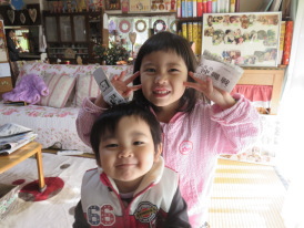 前日に手掛けた部分はバランスがよくないので、三名で造りかえ。孫たちはアイスクリームで釣って夕方までお手伝い。ウプシマ(今帰仁村謝名の大島)には子供達がいません(人口:10数名)。神アサギ広場や豊年祭の舞台で大声だしています(一時の賑わい)。隣で鳥(闘鶏)の鳴き声が聞こえると見学へ。傍をとおる方々に声をかけられると得意げであいさつ。