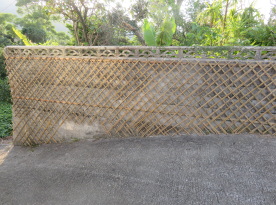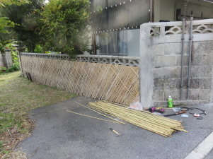 このページのスタート。12月28日から今帰仁村謝名の実家の塀に竹垣にしてみた。これからの調査や研究の拠点としていく予定。四日間の竹垣づくりで節々が痛く、体調を崩している。(下の二枚は国頭村安波で提供をいただくが出所未確認)昔風のチニブづくりには技術と時間と材料が手に入りにくいので、合理的なつくりで。