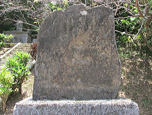 大宜味の「霊魂之塔」(戦後の建立)は前から気にしていた塔である。というのは、塔の石は今帰仁村運天にある「源為朝公上陸之跡」の碑と同質の花崗岩である。明治7年国頭間切の宜名真沖で座礁したイギリス商船の船底に敷いたバラストだという。座礁したイギリス船員の墓地が宜名真にありオランダ墓と呼んでいる。霊魂之塔の向かって右横に「大正十年十一月大宜味村立之」とあり、忠魂碑建立の年である。裏面はセメントが塗られ「忠魂碑」の文字が刻まれていた跡がある。
