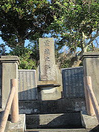大正十一年に忠魂碑が建立され同年十二月十三日に忠魂碑の除幕式を行っている。向って左横に「元帥公爵山縣有朋」(下線部は埋まっている)とあり、揮毫は山形有朋である。因みに源為朝上陸之跡碑は元帥東郷平八郎である。その忠魂碑を利用して「霊魂之塔」を建立(戦後)してあるが、「忠魂碑」を再利用して「霊魂之塔」を。どんな議論がなされたのだろうか?