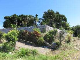 ▲知名町新城にある「花沖神社」 ▲神社化された鳥居(神は沖祝女)