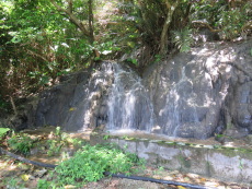 ▲水が勢いよく流れ落ちる滝川 ▲ウタキの祠の香炉 ▲田港の神アサギ