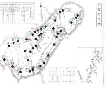 ▲喜界町残図地図は『喜界島古今物語』所収より(ムラの位置)