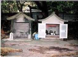 下の写真は15年前に田港の図像調査で訪れた時に撮影したものである。左側の祠に「地頭代拝所」とあり、地頭代火神(番所火神)である。そこに田港番所があったみられる。現在はウフェーにあるのは左が残されているが、ウフェーとある。
