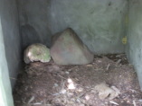 ▲ヒチグスク(ウタキ)への入口 ▲ヒチグスクのイベへの里道 ▲イベの祠 ▲祠内のイベ
