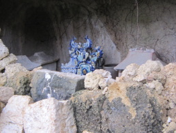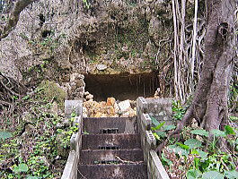 ▲台風で全面が崩壊したノロ墓 ▲墓の内部を伺う