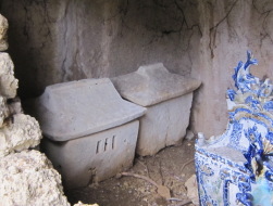 ①②墓の向って左側に石製厨子甕 ③正面奥の石製厨子甕
