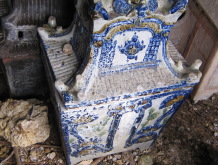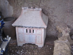 石製厨子甕が三基、御殿型の陶製厨子甕が二基、御殿型の陶製(素焼?)の厨子甕一基、蓋のない無頸(ボージャー)一基の計七基が納められている。向って右側にはイケがあり、そこには厨子甕に入れる以前のノロの遺骨とみられる。つまり、厨子甕に入っているノロの以前のノロの遺骨とみてよさそうである。