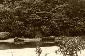 ▲大井川下流右岸のキーバカ(ドウルマタの墓) ▲ドゥルマタのキーバカを拝む玉城ノロ(昭和46年)