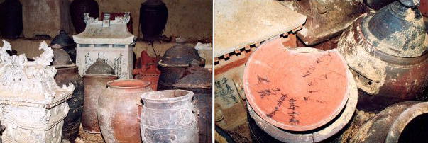 ▲イケの六名以前のノロの遺骨 ▲無頸(ボージャー)の厨子甕