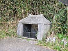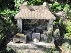 ▲上之拝所の祠(イビの前?) ▲祠の内部(香炉)
