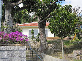 ▲ノロドゥンチの前にある神アサギ ▲富盛ノロドゥンチの祠(後方にセリグスクあり)