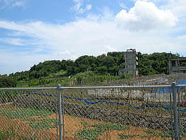 ▲中央の杜が屋我グスク ▲グスクへの入り口(左縄)